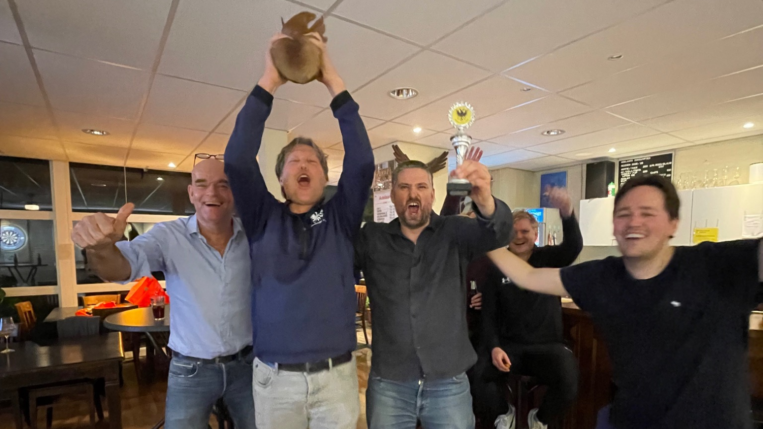 Danny bracht de stand eerst op 2-5 en schoot niet veel later ook de 3-5 binnen. Met het vertrouwen volledig terug ging Adelaars op jacht naar de aansluitingstreffer. Die liet net iets te lang op zich wachten, maar toen Daan – op aangeven van Danny – zijn eerste doelpunt in het Adelaarsshirt maakte, floot scheidsrechter Mac-Intosh af en bleven de punten in Utrecht.